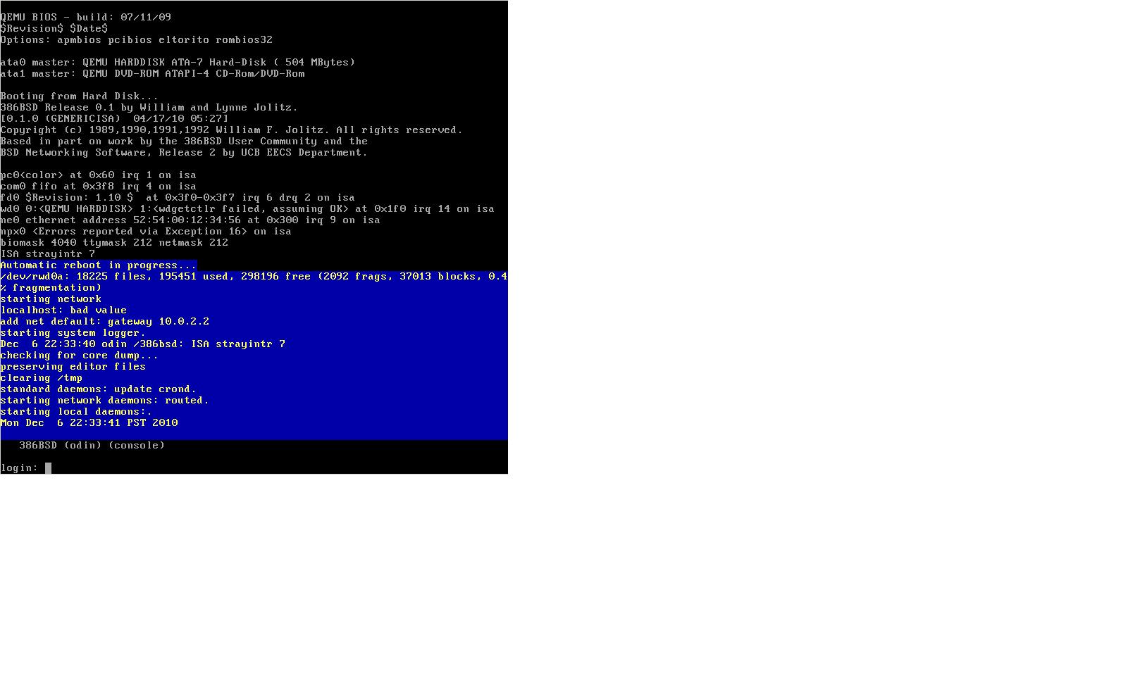 Example session on 386BSD 0.1 patchkit 2.4 (i386)